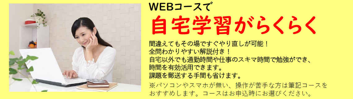 自宅学習はテキストを見ながら問題を解いていただきます。(筆記コースかWEBコースが選べます。)